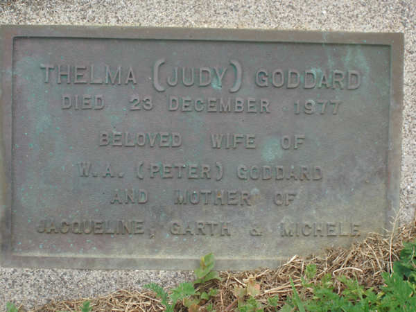 | GODDARD | Thelma (Judy) | photo | 23-12-1977 | W A (Peter) Goddard | mother of Jacqueline, Garta & Michele | |||