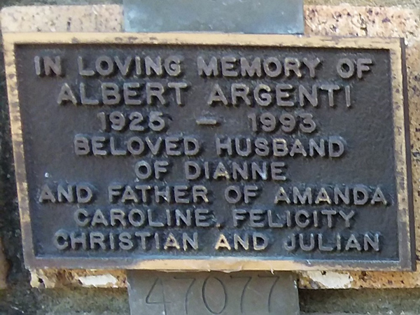| Argenti | Albert | photo | 0/0/1925 | 0/0/1993 | h/o Dianne f/o Amanda, Caroline, Felicity, Christian & Julian | ||