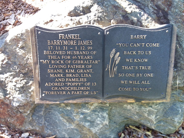 | Frankel | Barrymore James | photo | 17/11/1931 | 1/12/1999 | h/o Thea f/o Shane, Kim, Grant, Mark, Brad, Lisa | ||