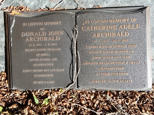 | Archibald | Catherine Adele | photo | 10/01/1919 | 10/06/2005 | w/o Donald John m/o John, Susan & Jane | ||