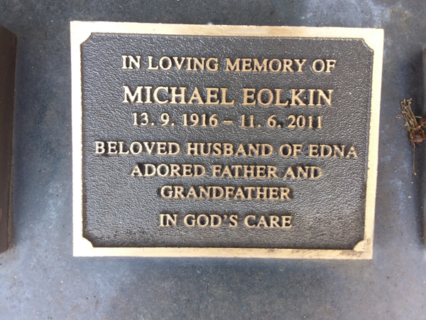 | Eolkin | Michael | photo | 13/09/1916 | 11/06/2011 | h/o Edna | ||
