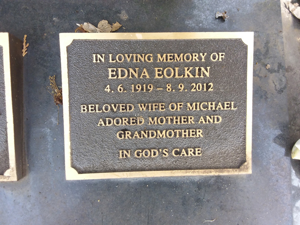 | Eolkin | Edna | photo | 4/06/1919 | 8/09/2012 | w/o Michael | ||