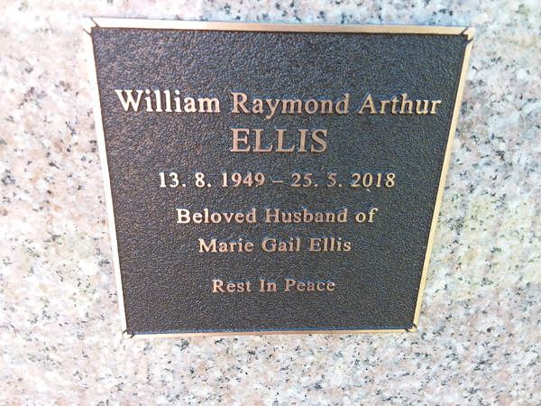 | Ellis | William Raymond Arthur | photo | 13/08/1949 | 25/05/2018 | h/o Marie Gail Ellis | ||