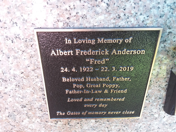 | Anderson | Albert Frederick 'Fred' | photo | 24/04/1922 | 22/03/2019 | |||