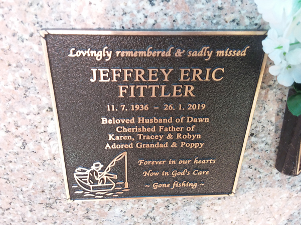 | Fittler | Jeffrey Eric | photo | 11/07/1936 | 26/01/2019 | h/o Dawn f/o Karen, Tracey & Robyn | ||