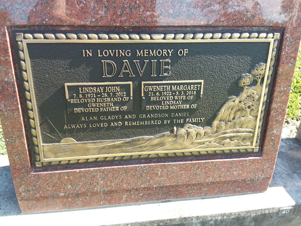 | Fielder | Edward Thomas | photo | 17/12/1916 | 1/01/1996 | h/o Sandra sf/o Sonja, Trudi & Trina | ||