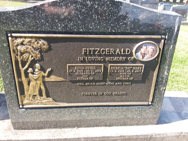 | Fitzgerald | Patricia 'Pat' Mary | photo | 13/08/1926 | 26/02/2017 | w/o Keven m/o Neil, Brian, Mary-Anne & Tony | ||