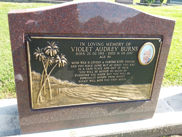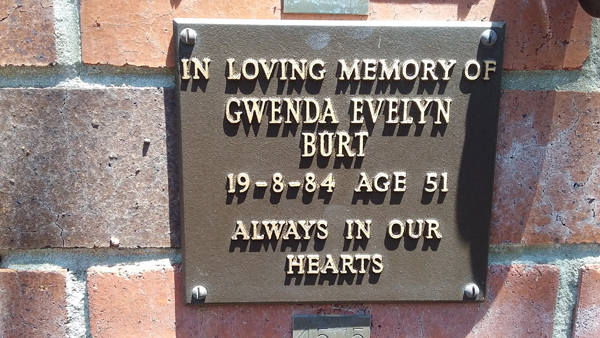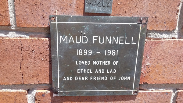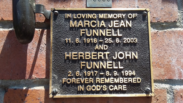 | Funnell | Marcia Jean | photo | 11/06/1916 | 25/06/2003 | w/o Ray m/o Bobby, Terry & Matt | ||