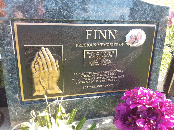 | Finn | Malcolm 'Mick' John | photo | 5/09/1943 | 27/03/2018 | h/o Trish | ||
