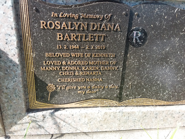 | Everett | Dianne Joyce | photo | 12/05/1944 | 26/07/2009 | m/o Anthony & Anna partner of Ken | ||