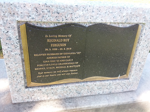 | Ferguson | Reginald Roy | photo | 30/03/1936 | 24/08/2018 | h/o Giovanna 'Jo' f/o Gina (Dec'd) & Carly | ||