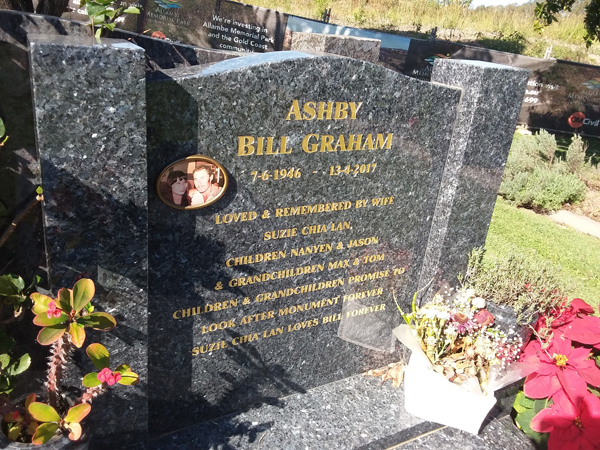 | Ashby | Bill Graham | photo | 7/06/1946 | 13/04/2017 | h/o Suzie Chia Lan f/o Nanyen & Jason gf/o Max & Tom | ||