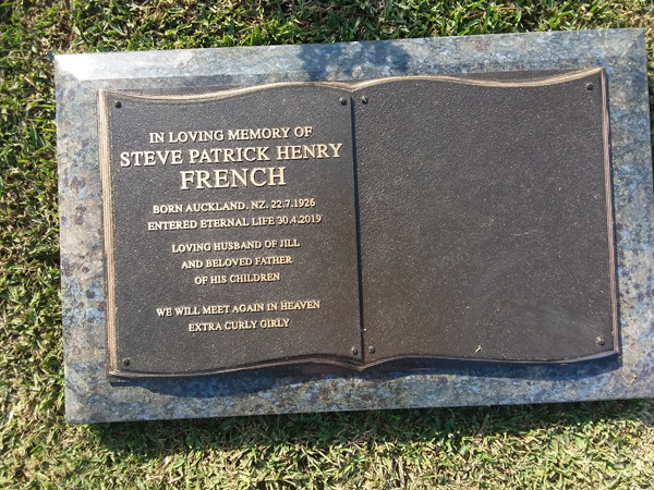 | French | Steve Patrick Henry | photo | 22/07/1926 | 30/04/2019 | Born Auckland, NZ h/o Jill | ||