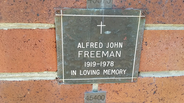 | Freeman | Alfred John | photo | 0/0/1919 | 0/0/1978 | w/o Bill m/o Sandra, Jennifer & Heather | ||