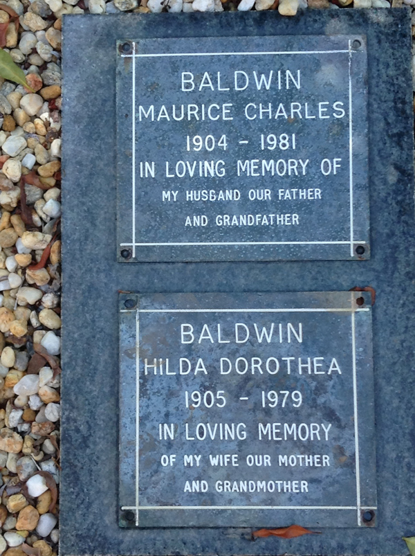 | Baldwin | Hilda Dorothea | photo | 0/0/1905 | 0/0/1979 | 83 | w/o Alfred | |