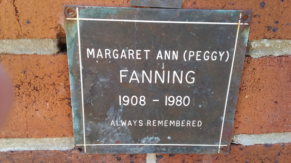 | Fanning | Margaret Ann (Peggy) | photo | 0/0/1908 | 0/0/1980 | |||