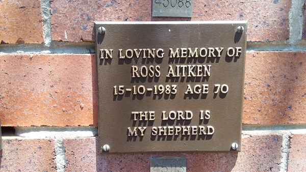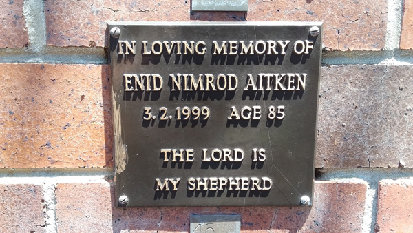 | Aitken | Enid Nimrod | photo | 3/02/1999 | 59 | w/o Bert | ||