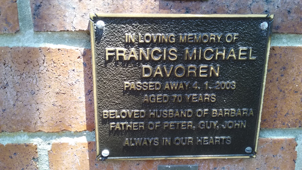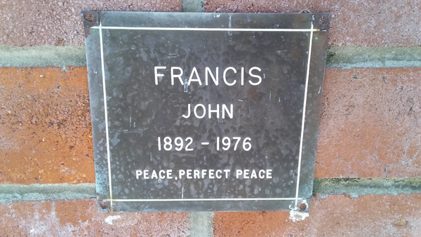 | Francis | John | photo | 0/0/1892 | 0/0/1976 | w/o Syd | ||