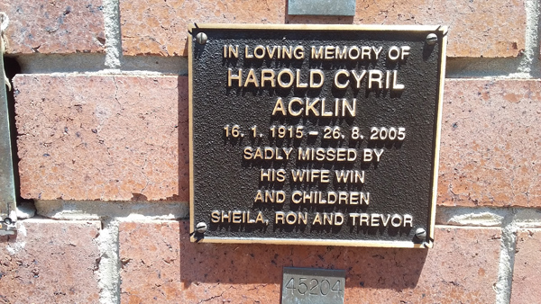 | Acklin | Harold Cyril | photo | 16/01/1915 | 26/08/2005 | |||