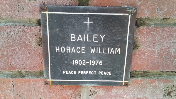 | Bailey | Horace William | photo | 0/0/1902 | 0/0/1976 | Spouse of Reva, f/o Craig, Donna & Matt & Kerry, G/f of Jay (dec), Lauche, Ruby, Ava & Harry, Ethan, Ashlee & Corban | ||