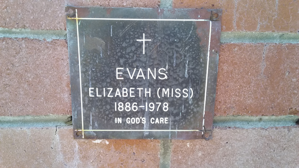 | Evans | Elizabeth (Miss) | photo | 0/0/1886 | 0/0/1978 | 5 | ||