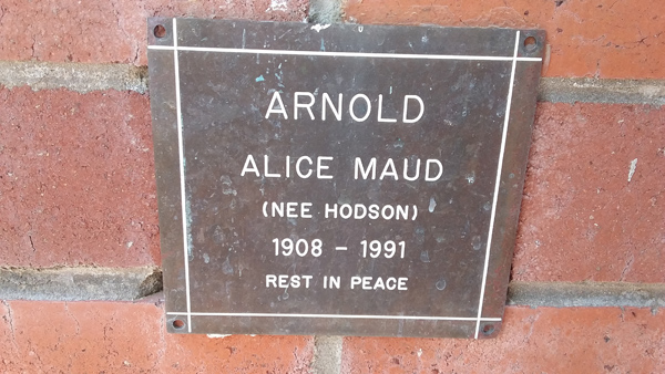 | Arnold | Alice Maud | photo | 0/0/1908 | 0/0/1991 | b/o Mervyn & Joyce | ||