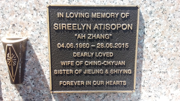 | Atisopon | Sireelyn 'Ah Zhang' | photo | 4/06/1960 | 28/06/2015 | w/o Ching-Chyuan s/o Jieling & Shiying | ||