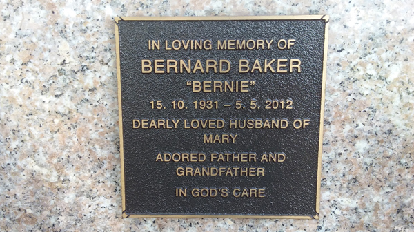 | Baker | Bernard 'Bernie' | photo | 15/10/1931 | 5/05/2012 | h/o Mary | ||