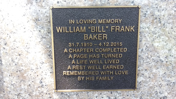 | Baker | William 'Bill' Frank | photo | 31/07/1910 | 4/12/2015 | |||