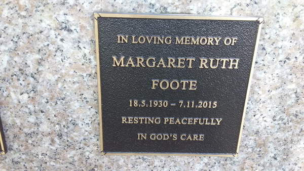 | Foote | Margaret Ruth | photo | 18/05/1930 | 7/11/2015 | |||
