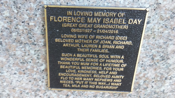 | Fletcher | Alice 'Gillian' Louise | photo | 13/03/1938 | 19/05/2017 | w/o Barry m/o Kathryn & Jane | ||