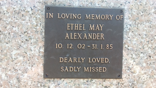 | Alexander | Ethel May | photo | 10/12/1902 | 31/01/1985 | |||