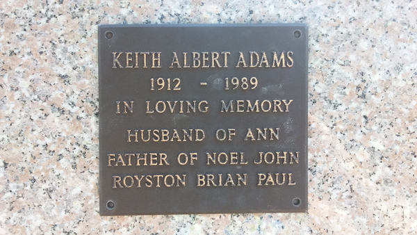 | Adams | Keith Albert | photo | 0/0/1912 | 0/0/1989 | h/o Ann f/o Noel, John, Royston, Brian, Paul | ||