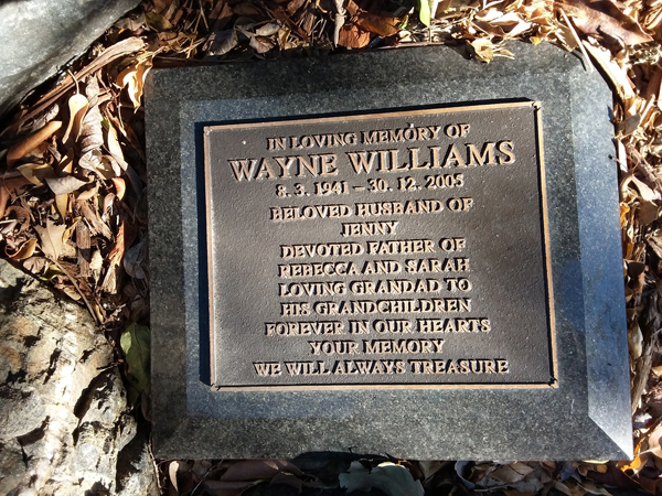 | Williams | Wayne | photo | 8/03/1941 | 30/12/2005 | h/o Jenny f/o Rebecca & Sarah | ||