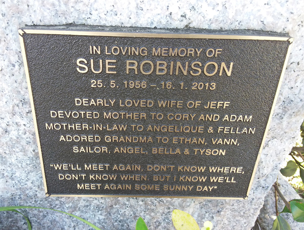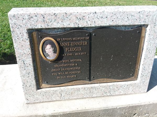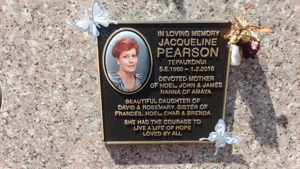 | Pearson | Jacqueline | photo | 9/06/1960 | 1/02/2016 | m/o Noel, John & James n/o Amaya d/o David & Rosemary | ||