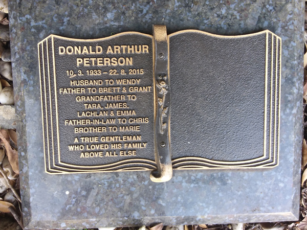 | Peterson | Donald Arthur | photo | 10/03/1933 | 22/08/2015 | h/o Wendy f/o Brett & Grant | ||