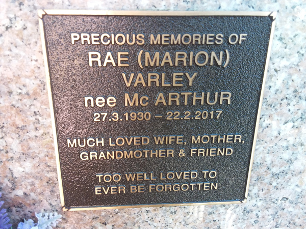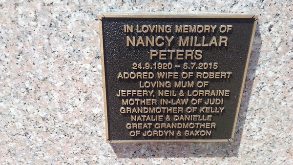 | Peters | Nancy Millar | photo | 24/09/1920 | 5/07/2015 | w/o Robert m/o Jeffery, Neil & Lorraine | ||