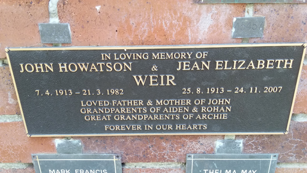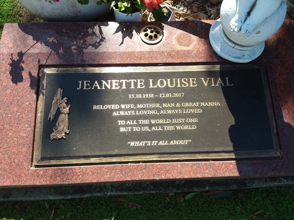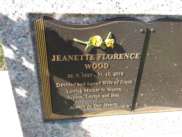| Wood | Jeanette Florence | photo | 26/07/1937 | 31/10/2018 | w/o Frank m/o Wayne, Jayson, Leyton & Ben | ||