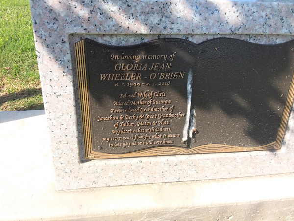 | Wheeler-O'Brien | Gloria Jean | photo | 8/07/1944 | 2/07/2018 | w/o Chris m/o Suzanne | ||