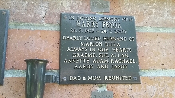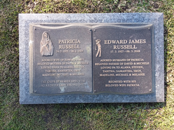 | Parsons | Eric John | photo | 25/02/1923 | 9/02/2014 | h/o Gwen f/o Katharine, Toni & Christopher | ||