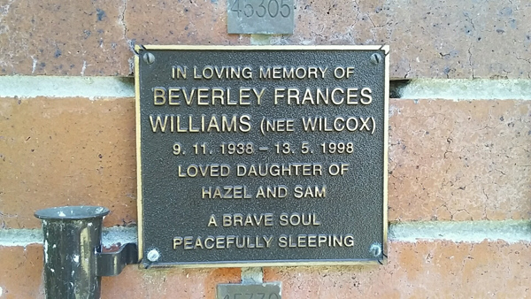 | Williams | Beverley Frances | photo | 9/11/1938 | 13/05/1998 | |||