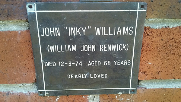 | Williams | John 'Inky' (William John Renwick) | photo | 12/03/1974 | 76 | |||