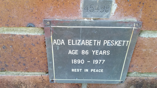 | Peskett | Ada Elizabeth | photo | 0/0/1890 | 0/0/1977 | |||