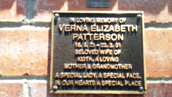 | Patterson | Verna Elizabeth | photo | 16/09/1923 | 22/02/2001 | |||