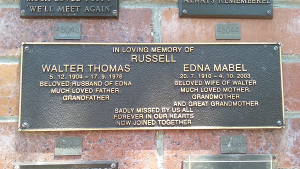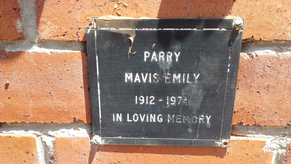 | Parry | Mavis Emily | photo | 0/0/1912 | 0/0/1974 | m/o Lillian Grace Nana of Peter & Judith | ||