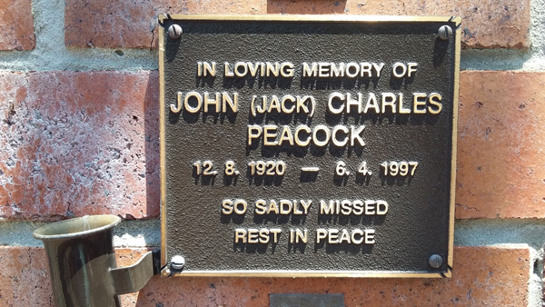 | Peacock | John (Jack) Charles | photo | 12/08/1920 | 6/04/1997 | |||