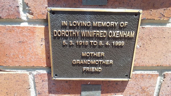 | Oxenham | Dorothy Winifred | photo | 5/03/1918 | 8/04/1999 | |||