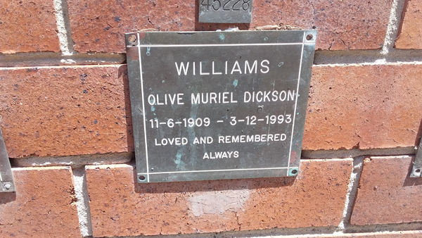 | Williams | Olive Muriel Dickson | photo | 11/06/1909 | 3/12/1993 | |||