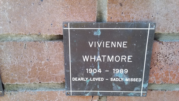 | Whatmore | Vivienne | photo | 0/0/1904 | 0/0/1989 | h/o Evelyn | ||