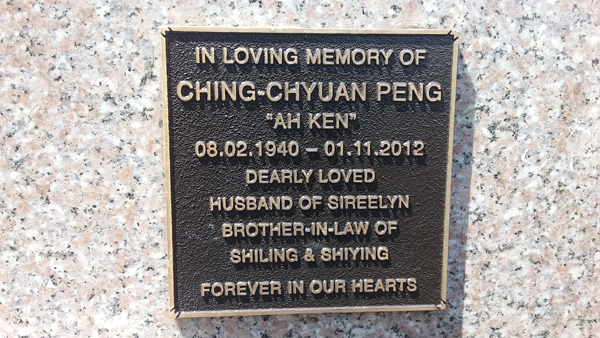 | Peng | Ching-Chyuan 'Ah Ken' | photo | 8/02/1940 | 1/11/2012 | h/o Sireelyn brother-in-law of Shiling & Shiying | ||